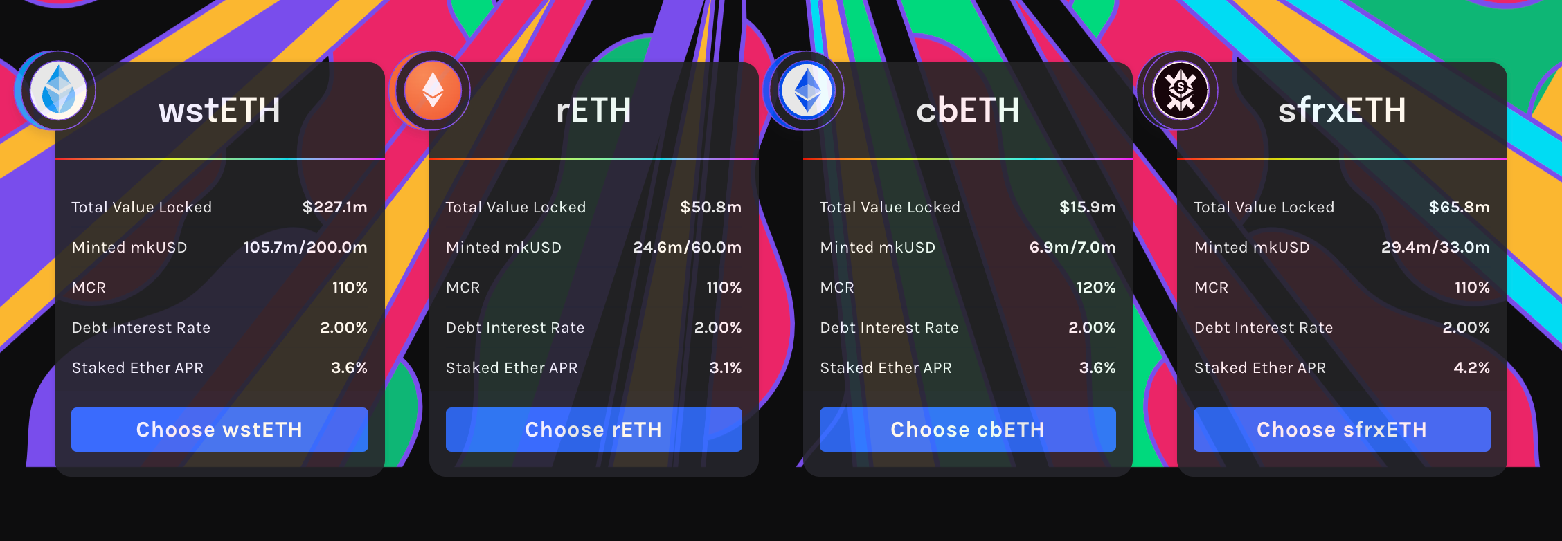 You can use LST tokens to mint the Prisma stablecoin called mkUSD. What's unique about minting mkUSD through Prisma is that you will earn PRISMA, the governance token, by maintaining an active debt. The amount of PRISMA you receive is determined by the number of votes it received in the previous week and how many others mint against this collateral within a 24-hour period.