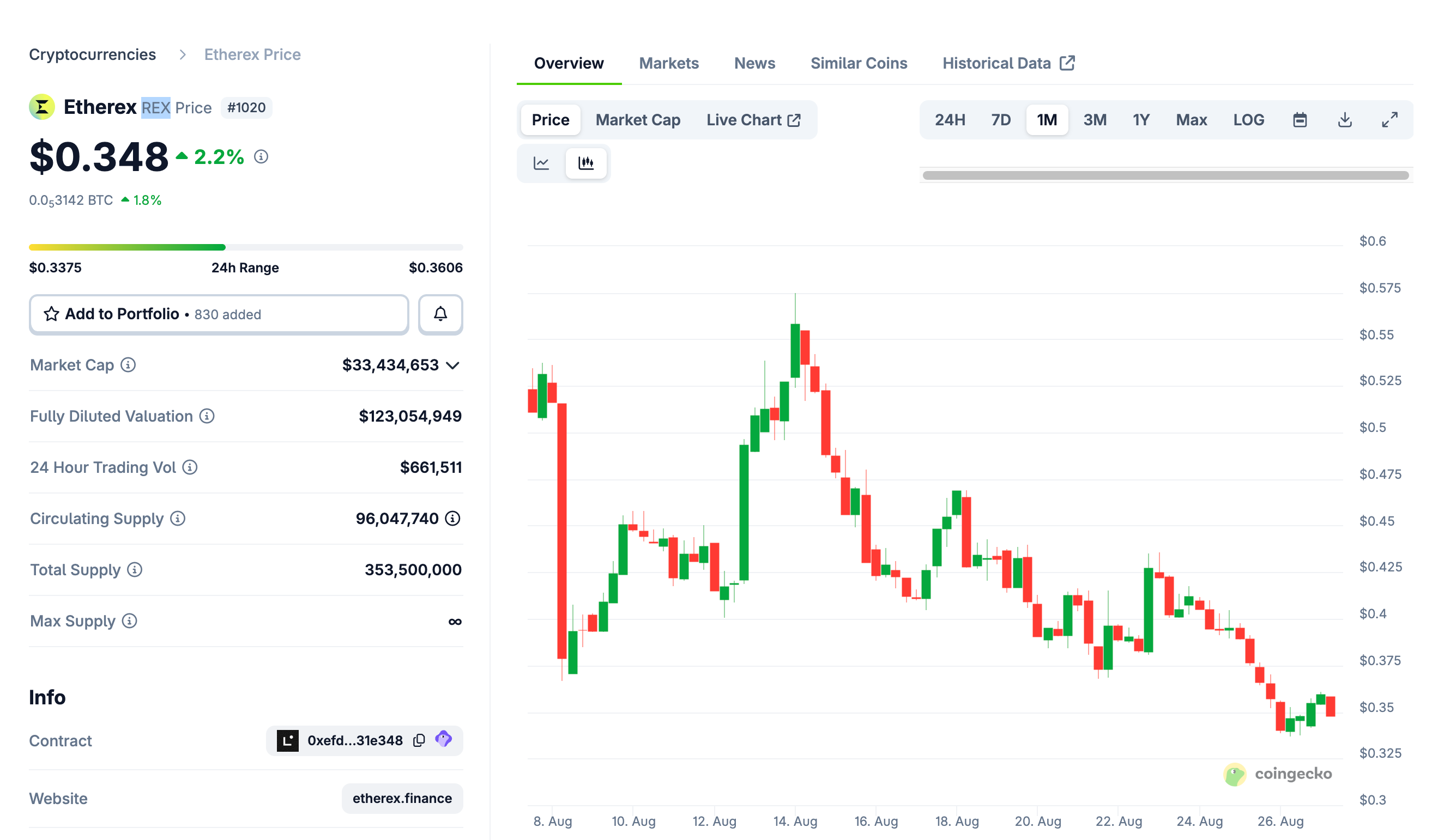 The token currently trades at $0.348 with weak chart action, but the real catalyst is a potential Linea token airdrop. If Linea launches governance tokens and drives user migration to the network, Etherex should capture significant fee flow as the dominant trading venue. You can farm REX tokens by providing liquidity to protocol pools, creating a natural accumulation strategy.
