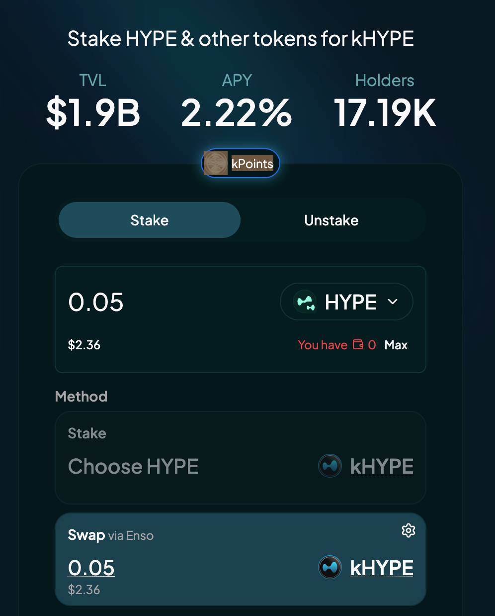 Stake your HYPE tokens to receive kHYPE